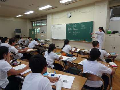 1年生の理科の授業です。気体の性質の実験のまとめをしていました。実験の結果から酸素、水素、二酸化炭素の性質を覚えましょう。(遠藤)