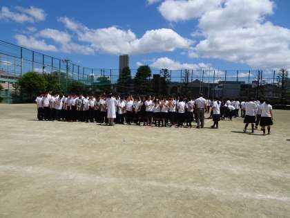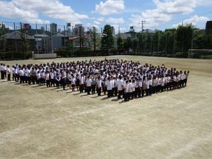 昼休みに70周年記念の集合写真の撮影を行いました。校庭に各クラス一列で順に並び屋上から撮影しました。明日は航空写真の撮影があります。すばやく並べるように協力しましょう。(遠藤)