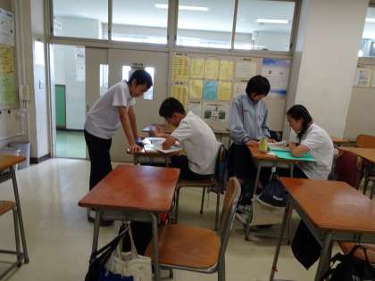 昼休みの様子です。腕相撲をしたりトークで盛り上がったりしています。勉強をしている人たちもいますね。それぞれに充実した昼休みを過ごしています。(遠藤)