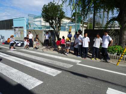 あいさつ運動4日目です。今日は、弦巻小学校でもあいさつ運動を行っています。弦巻小学校出身の生徒たちがあいさつ運動に来ているので、小学生も気軽に声をかけてきたり、大きな声であいさつを返してくれたりします。来週は三軒茶屋小学校にいきます。(遠藤)