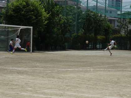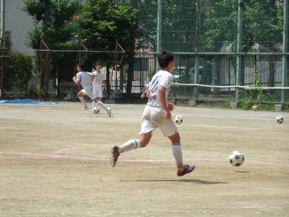 校庭ではサッカー部が活動しています。今日は風がなく気温も高いので、きちんと水分を取って熱中症にならないように注意しましょう。(遠藤)