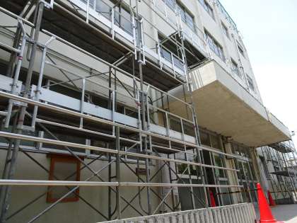 東校舎窓枠改修始まる