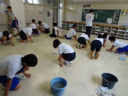 午後は大そうじです。1学期の間、お世話になった教室の床や黒板をきれいにそうじしています。床が白くピカピカになっていきます。これで気持ちよく夏休みを迎えることができますね。(遠藤)