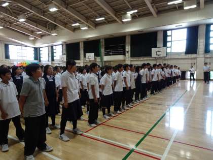 わたしは4月の全校朝会で、「1学期は基本の形を身につけましょう」とお話ししました。1学期を通して身につけたさまざまな「形」を土台として、そこに夏休みの成果を加えて、2学期の学校生活を「充実・発展」させ、大きな実りにつなげてほしいと思います。健康と安全に気をつけて、充実した夏休みにしてください。