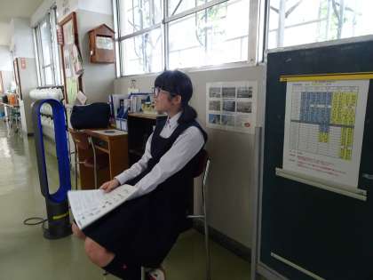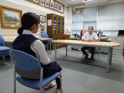 3年生の面接練習が始まりました。校長先生に面接官をお願いして面接練習を行っています。進路セミナーを見ながら入室から退室までの流れを確認しています。志望理由や中学校生活で得たことなど、きちんと考えておきましょう。(遠藤)