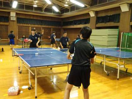 卓球部が格技室で活動しています。今日は100本ラリーをやっていました。(遠藤)