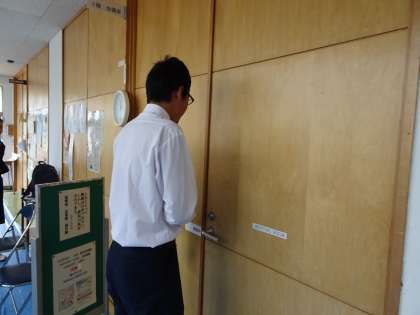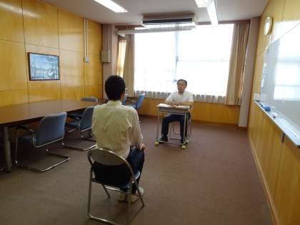 3年生の面接練習が行われています。今日は副校長先生が面接官です。生徒は緊張しながら扉をノックしていました。(遠藤)