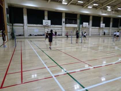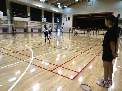 午後の体育館ではバドミントン部が活動しています。2年生が審判をして1年生が試合を行っています。これまでの練習の成果を出してがんばりましょう。(遠藤)