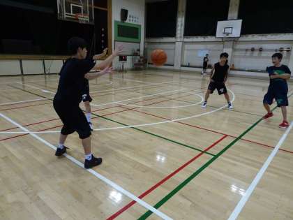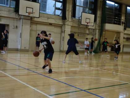15時から体育館でバスケットボール部が活動しています。男子は2対2です。スクリーンを使っていきましょう。女子はドリブル練習です。基礎をしっかりと身につけて1対1で相手を抜けるようになりましょう。(遠藤)