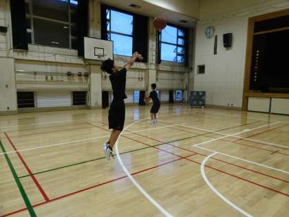 15時からバスケットボール部が体育館で活動しています。練習の最後にシュート練習をしていました。試合で自分にとって武器になるシュートを身につけましょう。(遠藤)