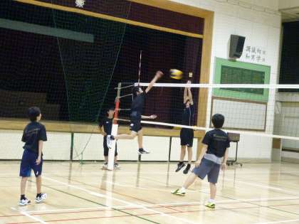 午後の体育館ではバレーボール部が活動しています。男子は練習の最後にゲームを行っていました。女子はレシーブの練習です。(遠藤)