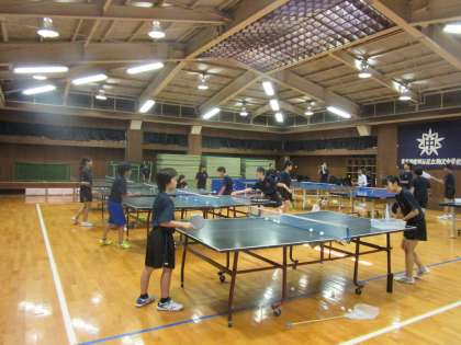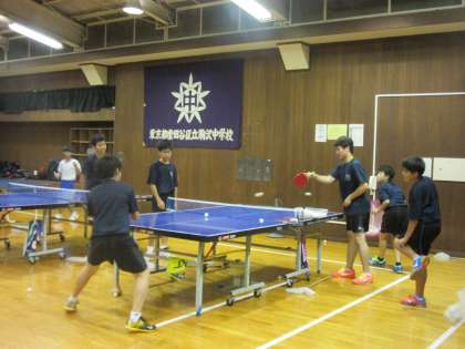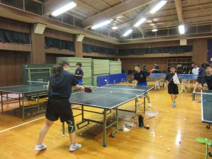 基礎打ちを終え、フォアのツッツキ練習をしています。