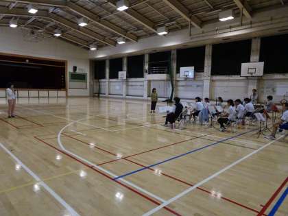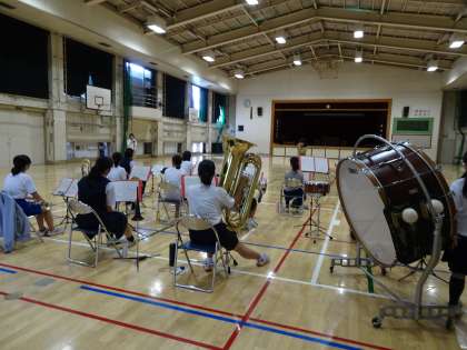 吹奏楽部は朝から体育館で合奏をしていました。8/3(木)のコンクールを想定した練習です。日直で見回りに来ていた黒田先生が演奏を聴き、感動して涙を流すほどすばらしい演奏に仕上がってきていますね。(遠藤)