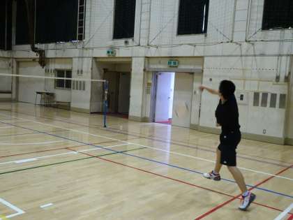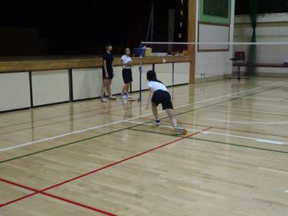 体育館ではバドミントン部が活動しています。スマッシュやレシーブの練習をしていました。また、奥のコートでは試合を行っていました。シャトルが落ちるギリギリまでくらいついていきましょう。(遠藤)