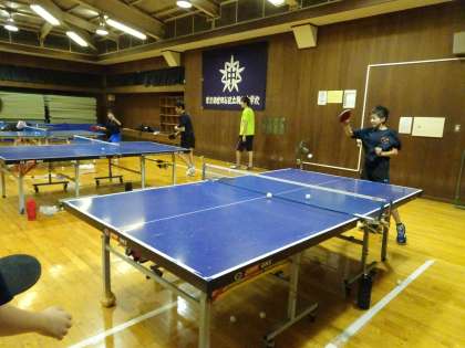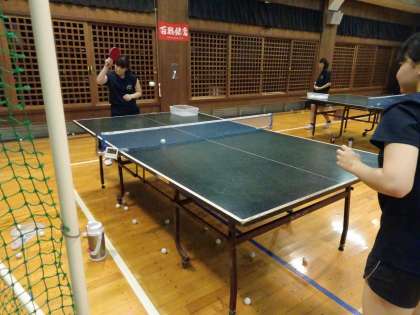 下回転サーブからの3球目攻撃の練習をしていました。自分のサーブから始まると3球目は、攻撃しやすいボールが返ってくることが多く、得点源になることが多くなります。ドライブやスマッシュで確実に得点につなげましょう。(遠藤)