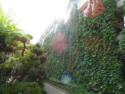 本校のグリーンカーテンも3階の窓を覆う高さにまで成長してきています。曇り空の下、毎日のように雨に打たれていたたくさんの葉っぱたちも、久しぶりの太陽光を浴びてとてもうれしそうですね。(遠藤)