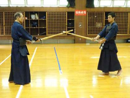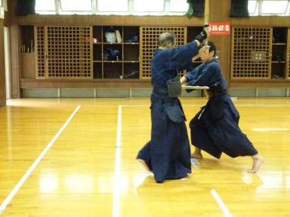 格技室で剣道部が稽古中です。胴打ちの練習をしていました。(遠藤)