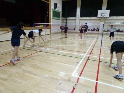 1年生は試合の続きを行っています。2年生はサーブの練習です。(遠藤)