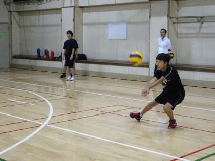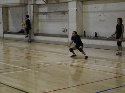 男子も女子もサーブレシーブの練習をしています。セッターがトスを上げやすい山なりの軌道のボールを返せるようにしましょう。(遠藤)