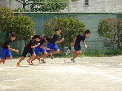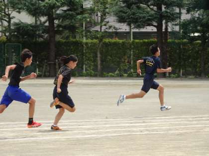 80mのタイムを計りながらトレーニングをしています。(遠藤)