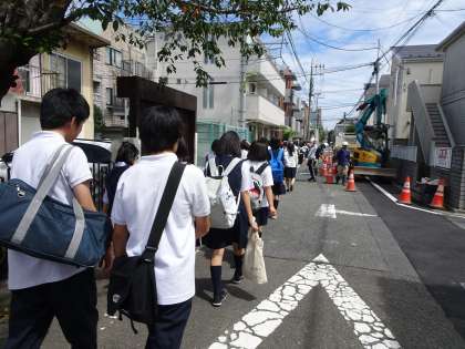 本校では、地域班ごとに分かれ、集団下校訓練を行いました。(遠藤)