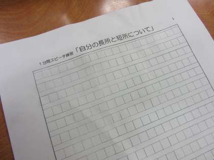 「1分間スピーチ練習」では、うまく言えないもどかしさを経験できましたね。
