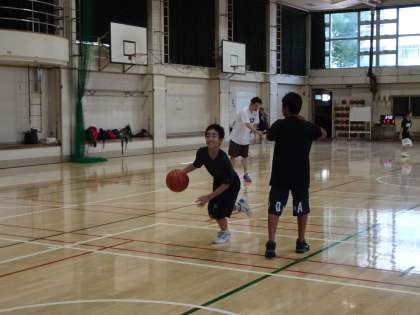 体育館ではバスケットボール部が活動しています。