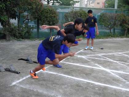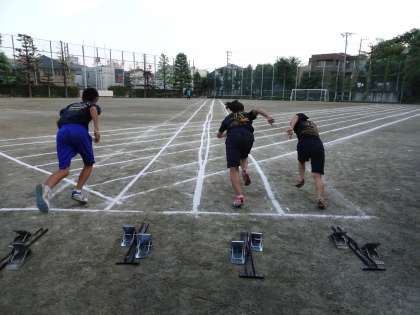 長距離組は3000mを走っています。短距離組は30mや50mを走っていました。(遠藤)