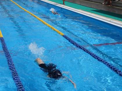 3年生の体育は水泳です。男子は泳法テストをしています。女子は背泳ぎをしていました。(遠藤)