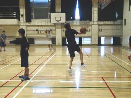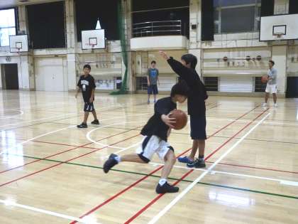 全速でドライブをして、そのままのスピードでレイアップシュートを決められるようになりましょう。(遠藤)