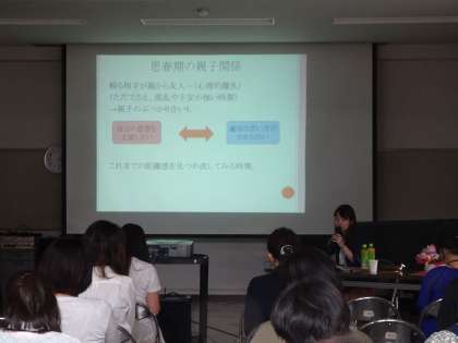 「知りたい!スクールカウンセラー 〜教えて!子どものSOS前ぶれサイン〜」と題し、思春期の親子関係や中学生がどんなことに悩んでいるのかなど、たくさんのお話を聞くことができました。(遠藤)