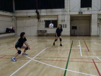 男子は3メン、女子はサーブレシーブの練習をしていました。