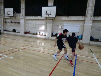 1対1やミートからのレイアップシュートの練習をしていました。(遠藤)