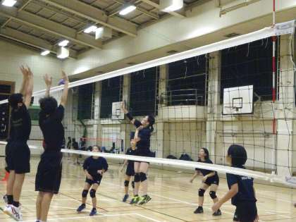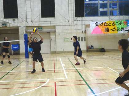 金曜日は男女で体育館半面しか使えないので、男子対女子のゲーム形式の練習をしています。(遠藤)