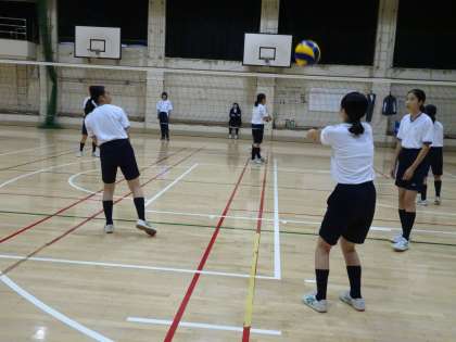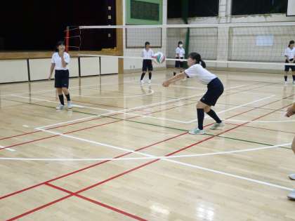 体育館でバレーボールをしていました。ボールの落下点に動いてレシーブしましょう。(遠藤)