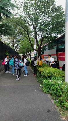 荷物をバスに積み込み、出発式を終え、2泊3日の河口湖移動教室の始まりです。(小林)
