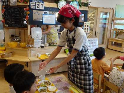 CONANAでは犬の毛を乾かすお手伝いをしていました。駒沢こだま保育園では子どもたちの給食のお手伝いです。世田谷ファームでは花の苗を運んでいました。みんな積極的に取り組んでいますね。(遠藤)