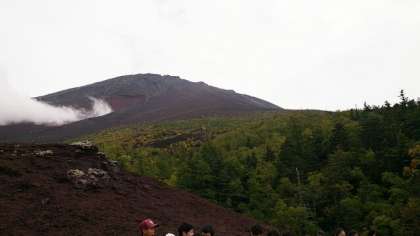 奥庭を出発して約1時間、富士山御中道を歩きました。途中からは雲の中でした。(桝田)