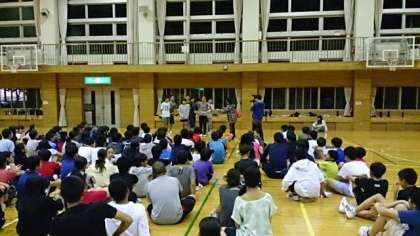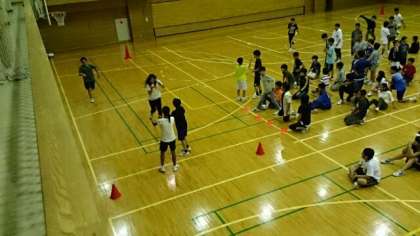 本日のレクレーションは、卓球のボールとラケットを使った全員リレーと学年全員でハンカチ落としをやりました。クラス対抗は大いに盛り上がりました。閉会式では、オリエンテーリングの表彰も行いました。(桝田)