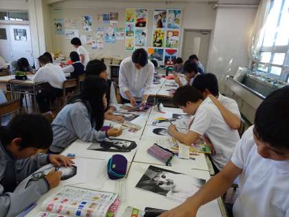 デザイン画の制作をしています。色彩計画を立てたり、ケント紙に転写したりしていました。(遠藤)