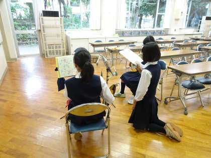 合唱コンクールに向けてパートごとに分かれての練習です。(遠藤)