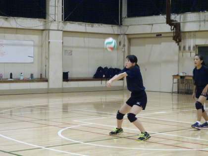 レシーブの練習をしています。足を動かしすばやくボールの落下点に入りましょう。(遠藤)