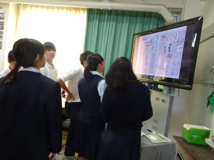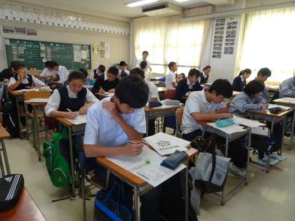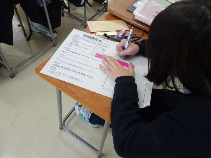 2年生の総合の授業では職場体験の事後学習として、はがき新聞を作っています。