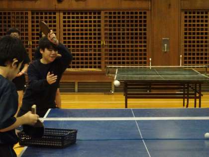 フットワークを使って回り込んで打ち返す練習です。しっかりと足を動かしましょう。(遠藤)