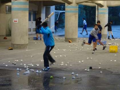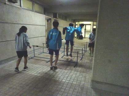 雨が降っているので、プール下では野球部、音楽室前では陸上競技部が活動しています。