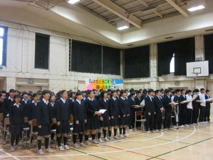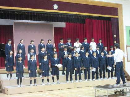 どのクラスも課題曲を発表し、緊張した面持ちで臨みました。