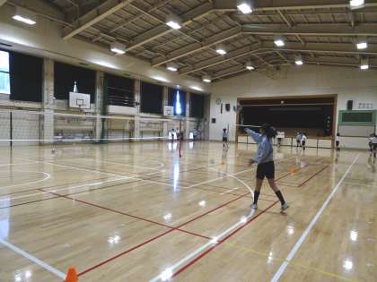 女子は体育館でバレーボールです。アンダーハンドサーブのテストをしていました。(遠藤)