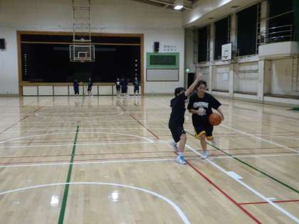 ディフェンスは最後の一歩をきちんと出してオフェンスの正面に入りましょう。フリースローを確実に決められるように何本もくりかえし練習しましょう。(遠藤)