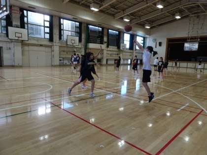 大庭新海杯に向けて練習しています。ゲームの中でも普段練習している動きができるようになってきました。最後のシュートをきちんと決め、得点につなげていきましょう。(遠藤)