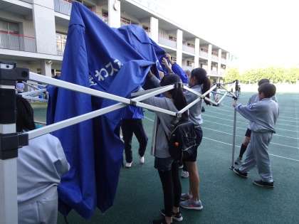 JRC部はテントの片付けを手伝っています。最後までみんなよく働いてくれています。